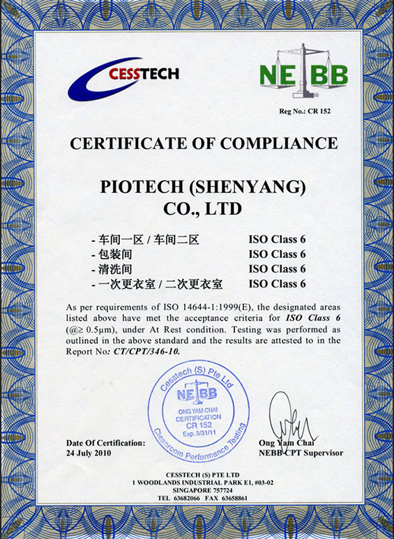 一級(jí)無塵室NEBB測(cè)試報(bào)告